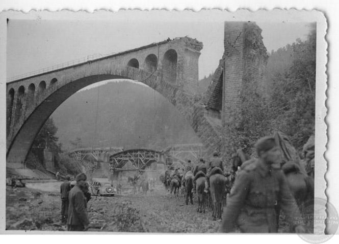 Для відновлення руху поїздів (гостра необхід- ність у перевезенні австрійської армії) відразу ж почалася відбудова моста. Було споруджено 18-метрову металеву арку з елементів системи Рот-Ваґнера, яку вставили на місце зруйнованої 12-метрової арки.