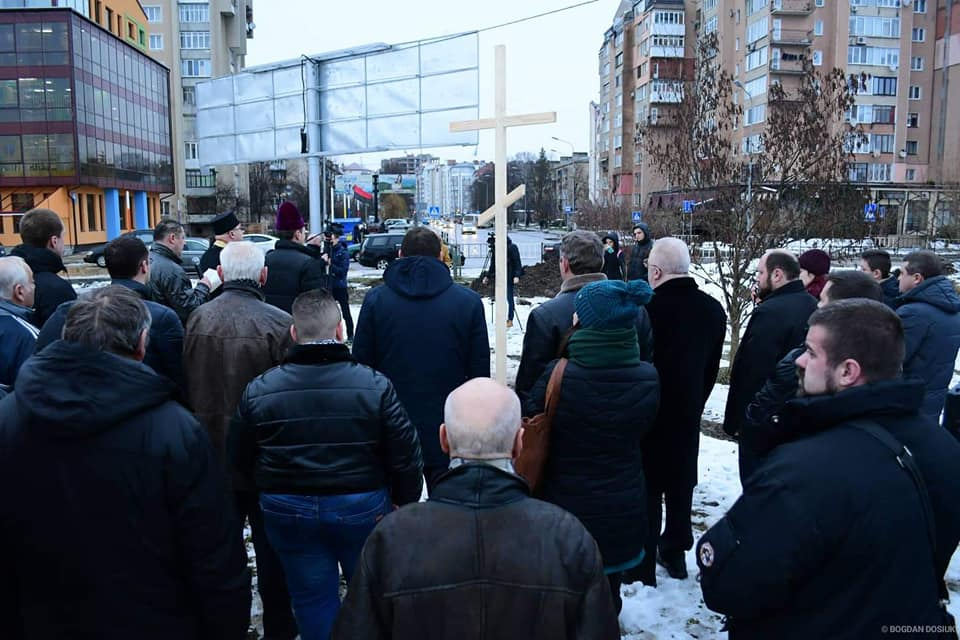 В Івано-Франківську на розі вулиць Південний Бульвар-Романа Гурика освятили хрест та місце під каплицю Святого Духа.