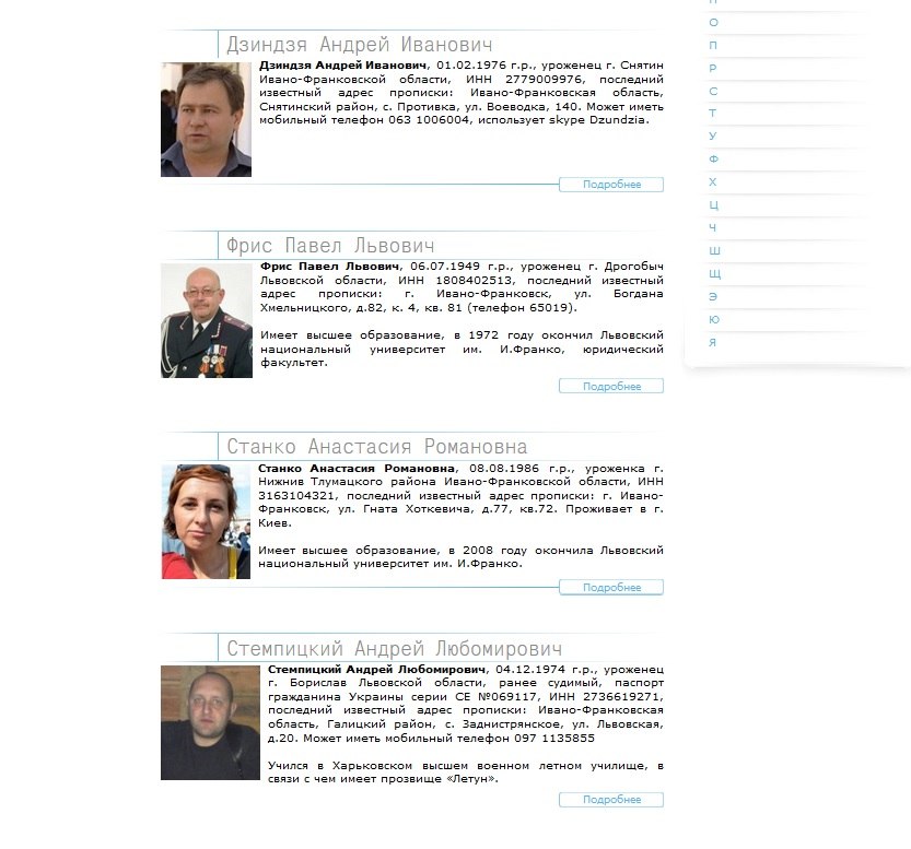 Досьє вражають аж занадто детальною інформацією. Зокрема є дані про роботу, бізнес, місце проживання, сім'ї, і навіть мобільні телефони окремих «ворогів» уявної «Новоросії».