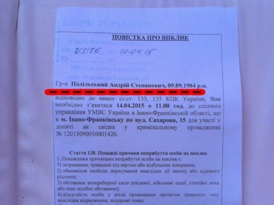 “Оперативно так принесли повістку сьогодні зранку, мабуть, по вчорашньому катанні голови управління юстиції в Івано-Франківській області Василя Кавацюка”, – написав Андрій Подільський.