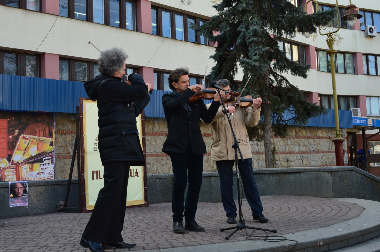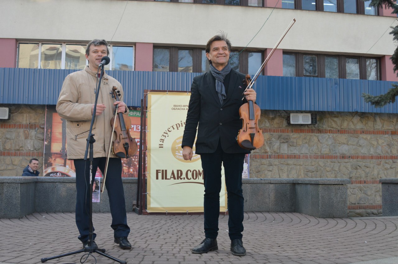 Ще не вмерла України... В центрі Івано-Франківська на Вічевому майдані відомий український скрипаль разом із франківськими колегами та мешканцями виконали гімн Украни.