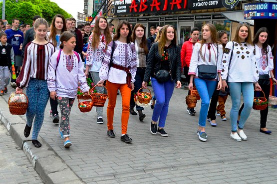 Молодь зібралася біля пам'ятника Івану Франку. Звідти організованою колоною рушили до Вічевого майдану. Дорогою дівчата у вишиванках роздавали перехожим писанки та крашанки.