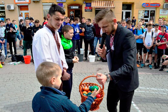 На Вічевому майдані провели вікторину, спортивні забави та виклали Великодній кошик. По завершенню всі учасники поділилися на дві групи та провели водяні бої.