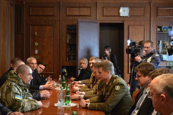 В рамках візиту делегація зустрілась з міським головою Івано-Франківська Віктором Анушкевичусом і його заступниками. На зустрічі також були присутні командир 4 батальйону оперативного призначення Нацгвардії та командир батальйону «Івано-Франківськ».
