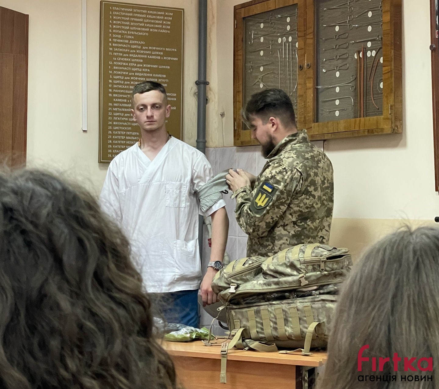 Студенти мали можливість послухати історію ветерана й поставити йому запитання. Крім того, Олексій Долженко провів майстер-клас та розповів студентам як та чим заповнюється наплічник бойового медика.