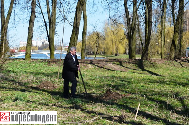 Сьогодні, 9 квітня, під час загальноміської толоки мерія Івано-Франківська на чолі з Віктором Анушкевичусом висадила два десятки саджанців неподалік міського озера.