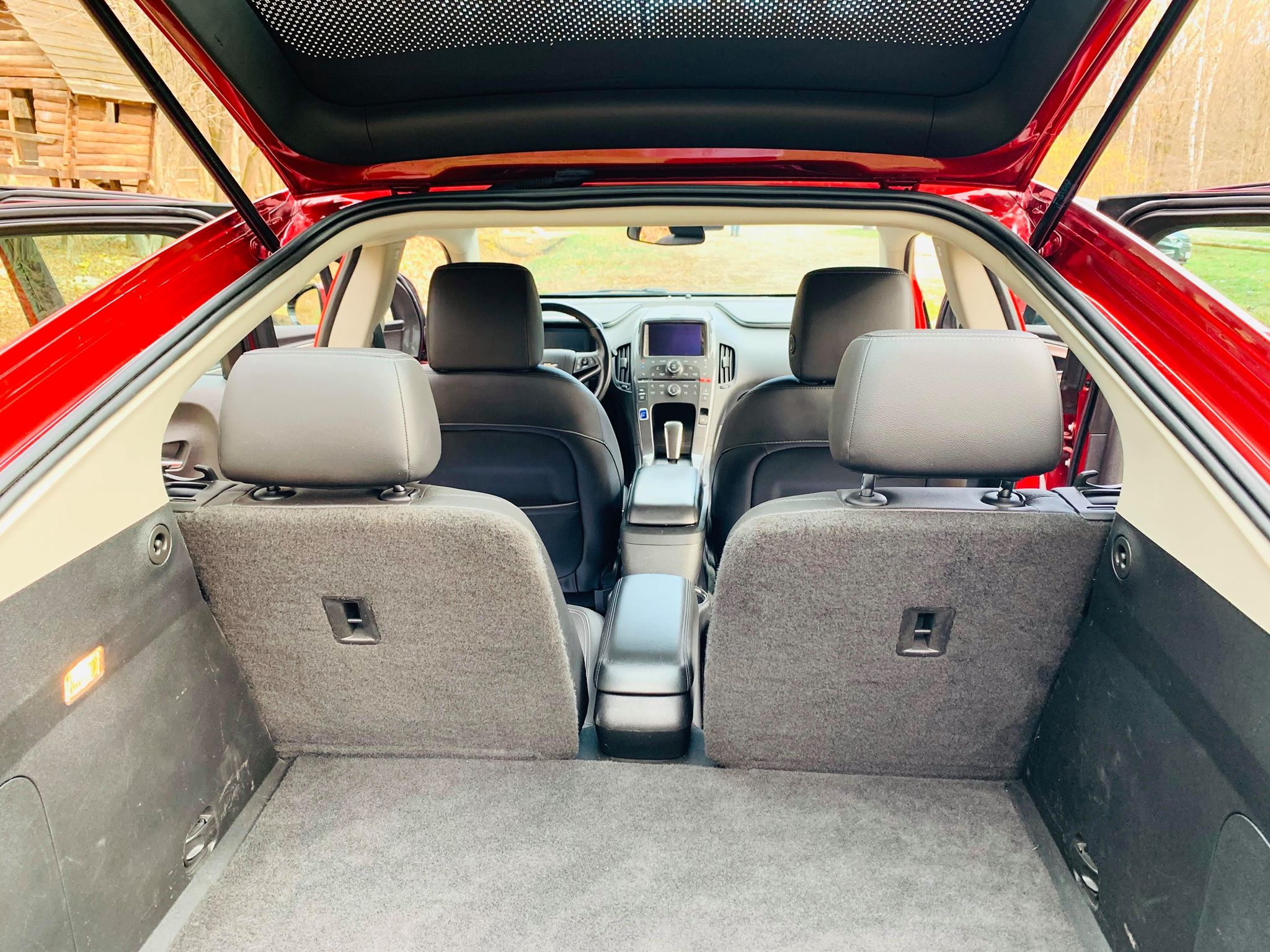 Попри чималі розміри, в авто можуть сісти лише 4 особи: два задніх крісла розділяє високий тунель, під яким схована тягова батарея. Через занижений дах задньої частини в багажнику Volt не вдасться розмістити габаритні вантажі, проте його загальний об’єм все ж чималий: 1005 л при складених задніх кріслах.