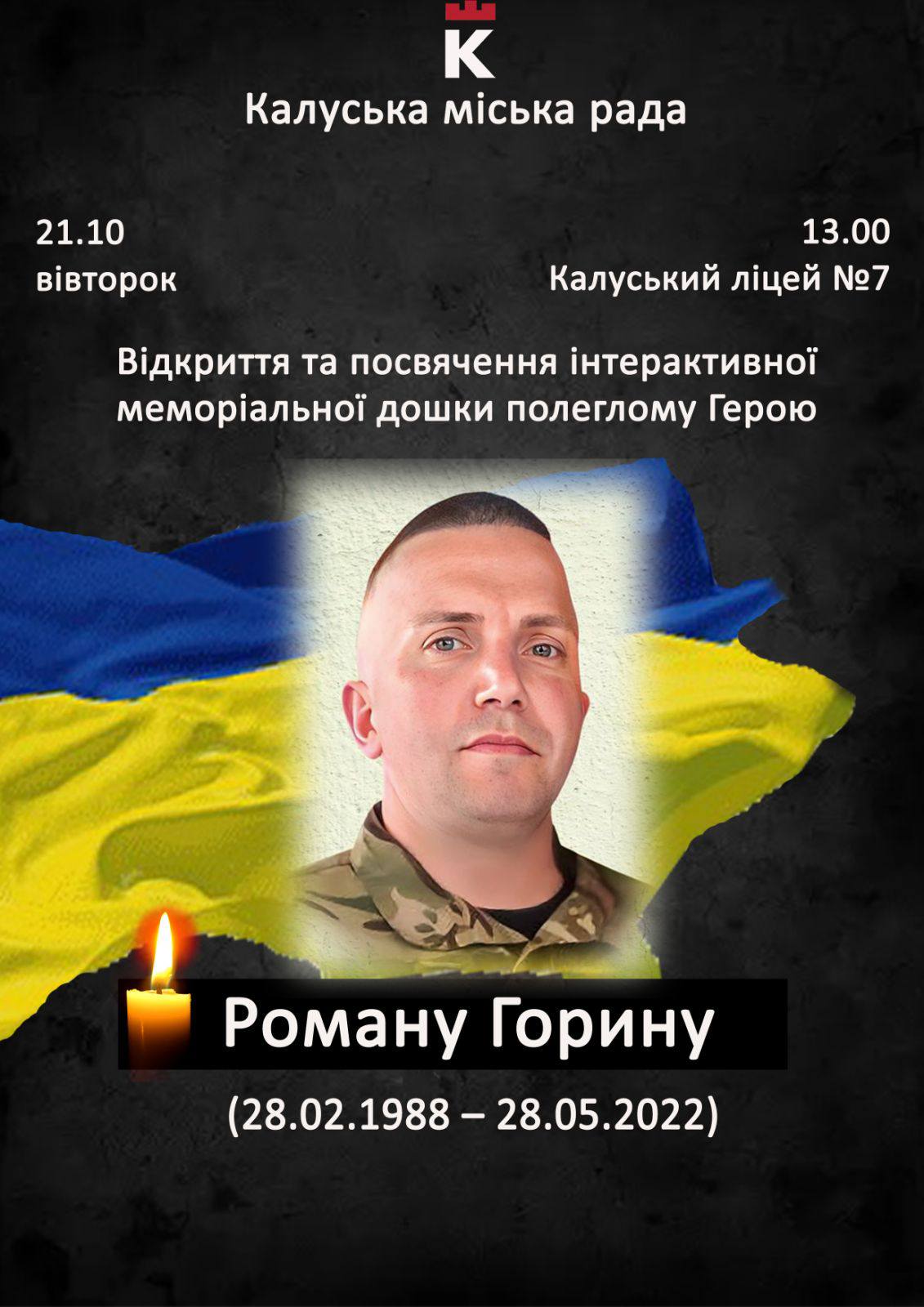 "Вшануймо своєю присутністю пам’ять полеглих Героїв. Відкриття та освячення інтерактивних меморіальних дощок відбудеться у вівторок, 21 жовтня, у Калуському ліцеї №7 (вулиця Хмельницького, 8а). Початок об 13.00 годині", — йдеться у дописі.