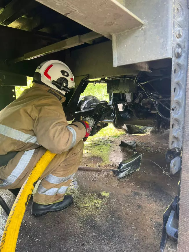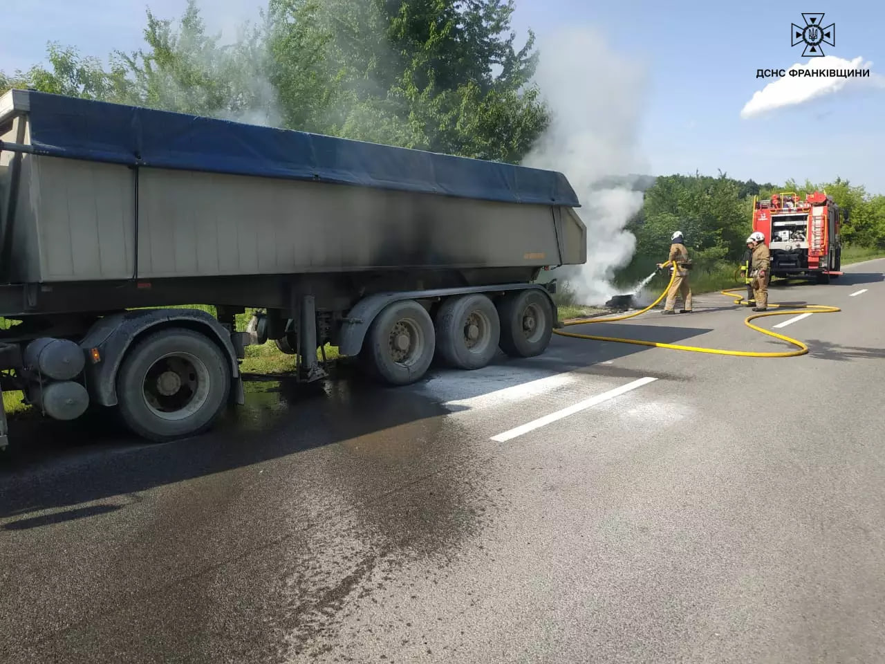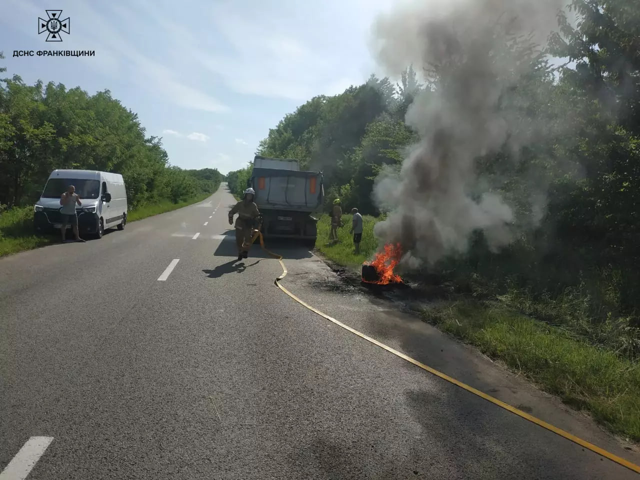 Прибувши до місця виклику рятувальники оперативно ліквідували пожежу колеса вантажного автомобіля та не допустили поширення вогню на більшу площу.