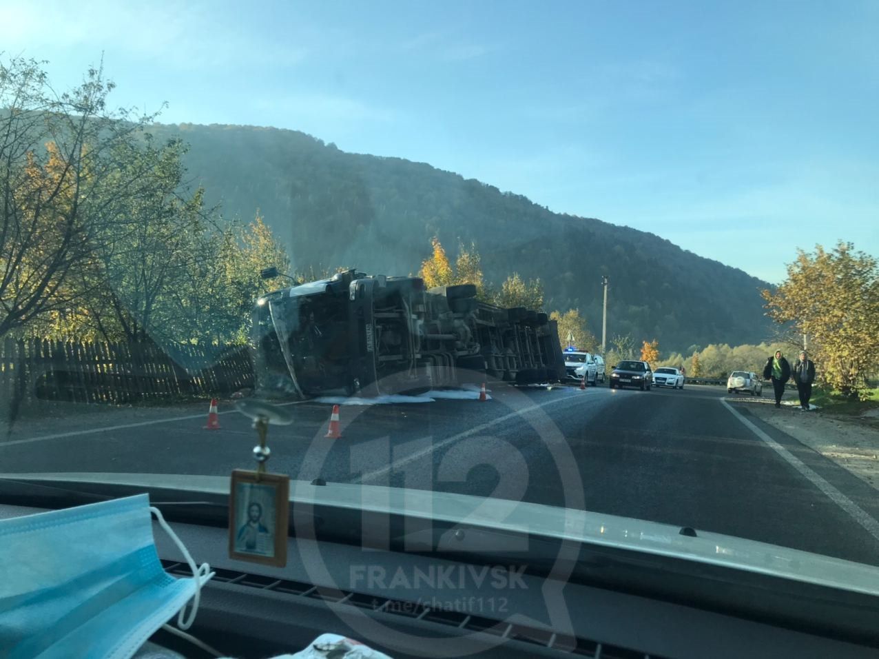 На автодорозі Н-09 «Мукачево-Львів» відбулась ДТП за участю вантажного автомобіля «RENAULT», що з’їхав в кювет та перекинувся на праву сторону, обірвавши при цьому лінію електропередач (380 В).