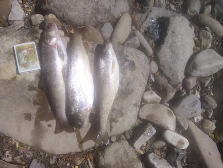При них виявлені вудочки, гарпун та вилучені три рибини струмкової форелі. Затримані виявились жителями смт. Перегінське та с. Княжолука.