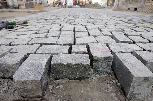 На вказане місце виїхали двоє офіцерів міліції. Вони застали немолоду вже жінку, яка складала бруківку в сумку. Поряд лежав мішок, пише Фіртка з посиланням на АП.