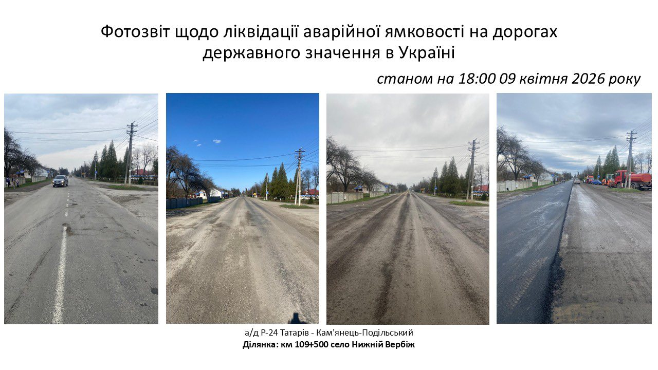 Також роботи тривають на дорозі Р-20 Тязів — Старі Кути в межах Городенківської громади. Там застосовують пневмоструменевий метод для ліквідації ямковості.