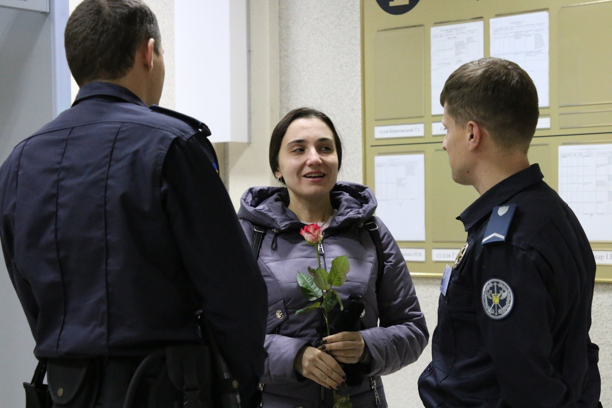 Приємною традицією стали квіти від співробітників Служби судової охорони, які дарують для всіх відвідувачок та працівниць судових установ Прикарпаття взятих під охорону.