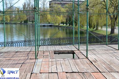 Наслідки акту вандалізму із присмаком яскравої та неадекватної агресії можна було спостерігати сьогодні на сцені, яка розташована на території міського озера.