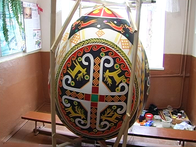 Право розписати прикарпатську отримала Ковалівська школа. Вчитель образотворчого мистецтва та її вихованці створювали образ берегині на святковому яйці.