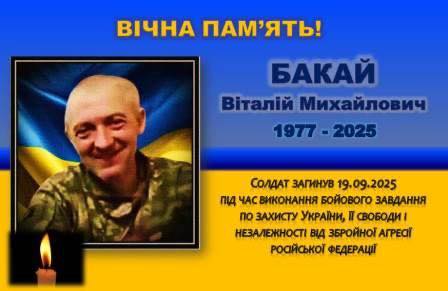 У російсько-українській війні поліг військовослужбовець із селища Більшівці Віталій Бакай.
