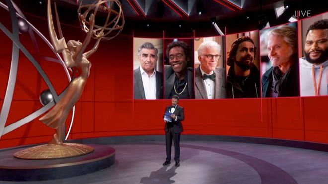 Останньою церемонією нагородження, яка стала "віртуальною" на тлі постійних карантинних обмежень, стала "Еммі" у неділю ввечері, на якій Вартові, Сукцесія та Крит Шітт перемогли.