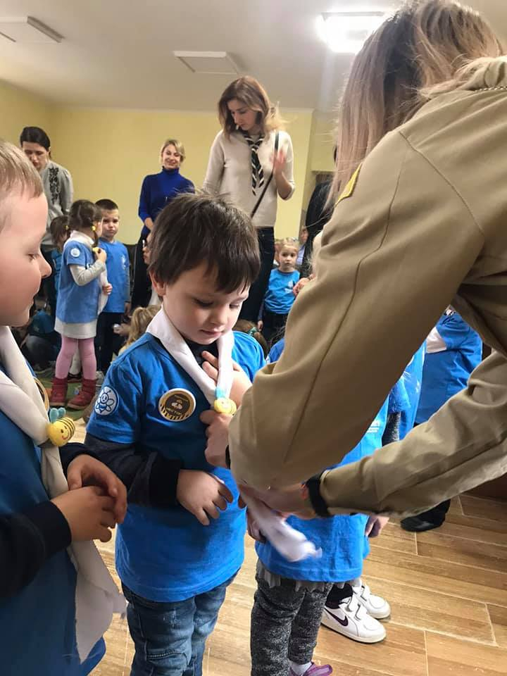 Також маленькі українські скаути виготовили ялинкову прикрасу, листівки для воїнів, розмалювали пряник, змайстрували справжню воскову свічечку та запалили Вифлеємський Вогонь Миру.