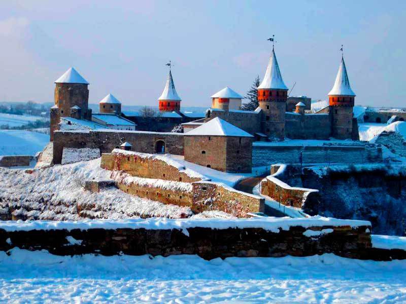 А це зустрічає змерзлих подорожніх Кам'янецький замок у Кам'янці-Подільському.