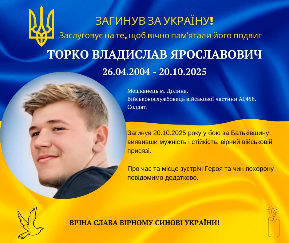 «Йому був лише 21 рік. Та, попри такий молодий вік, Владислав свідомо став на захист України, виявивши мужність, стійкість і вірність військовій присязі.Війна забирає найкращих — тих, у кого все ще попереду: мрії, плани, життя… Щирі співчуття рідним і близьким Владислава. Світла пам’ять Герою, який навіки залишиться у серцях долинян.Вічна слава вірному синові України», — йдеться у дописі.