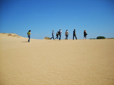 ОЛЕШКІВСЬКА ПУСТЕЛЯ. Одна з найбільших пустель Європи знаходиться саме в Україні. Олешківські піски складаються із безмежних барханів (тутешні мешканці називають їх «кучугурами») висотою близько 5 м з негустою рослинністю. Знаходяться ці піски у Цюрупінському районі (стара назва Цюрупінська – Олешки), за 30 км на схід від м. Херсон. Дніпровські піски існували здавна, але Олешківська пустеля у нинішньому своєму вигляді з’явилася порівняно нещодавно: через випасання величезних отар овець у ХІХ ст., які знищили траву, звільнилися піски, а вітрова ерозія дала їм можливість розширюватися. Олешківські піски за температурним режимом та кількістю опадів можна швидше віднести до напівпустель. Влітку пісок нагрівається до 70 градусів. Трапляються тут піщані бурі. В пустелі на глибині 300-400 м існує прісне підземне озеро з дуже смачною водою. Проте науковці дослідили, що масштабно добувати звідси воду не можна, оскільки рівень води знизиться, і ліси, які насаджені довкола пустелі, не зможуть стримувати піски. До найближчого населеного пункту – близько 7 км. Раніше в Олешківських пісках знаходився військовий полігон, на якому відпрацьовували бомбування льотчики з країн Варшавського договору. У зв’язку з цим було обмежено наукове дослідження регіону. І зараз у пісках знаходиться значна кількість снарядів, що не розірвалися.