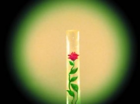 ТРОЯНДА У ВОЛОСІ. Волосина просвердлена по довжині та відполірована зверху і всередині до прозорості. У середину волосини вставлено виготовлену гілочку троянди, товщина якої 0,05 мм.
