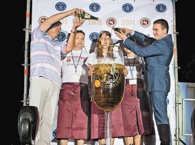 Українці зробили найбільший у світі келих для шампанського об’ємом в 56,25 л. Як пити шампанське з такого келиха, поки незрозуміло, але це ще один офіційний світовий рекорд Гіннесса від українців.