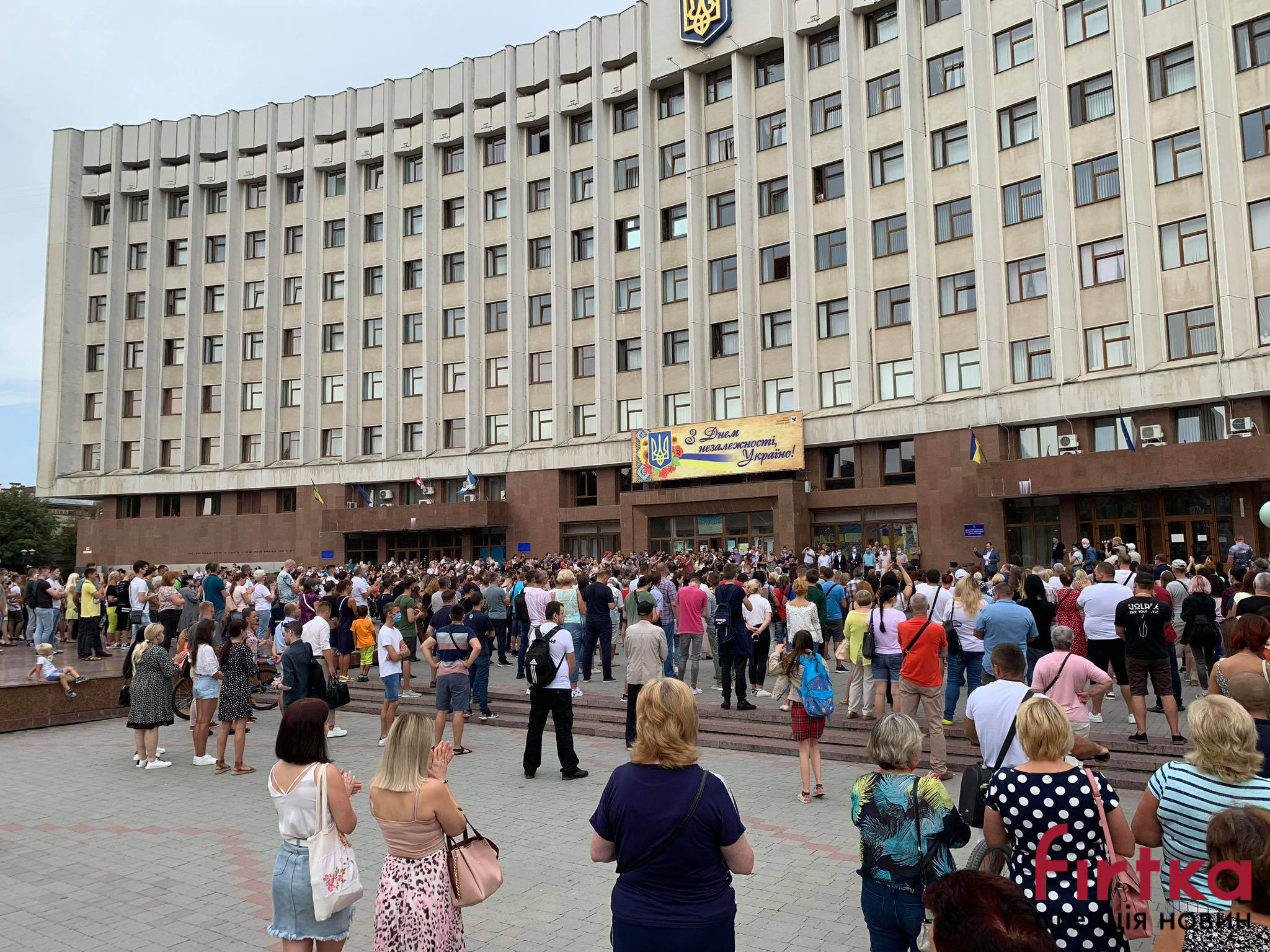 В Івано-Франківську сотні людей - освітяни, приватні підприємці, працівники готельно-ресторанного бізнесу вийшли під стіни адмінбудівлі ОДА із протестом проти запровадження в місті обмежень "червоної" карантинної зони.