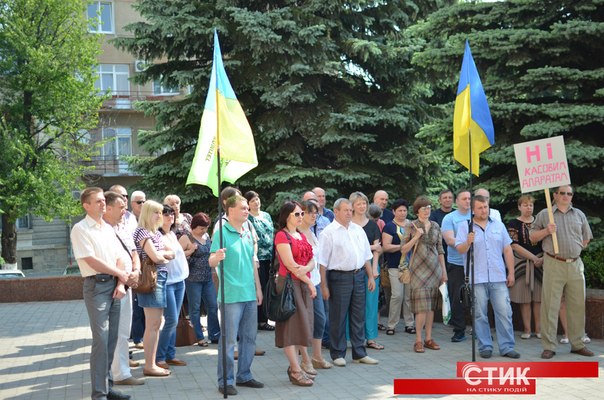 "Комітету підприємців Івано-Франківська", який проводив цю акцію, вдалось зібрати кілька десятків людей. Протестуючі тримали прапори України та гасло "Ні касовим апаратам", пише Фіртка з посиланням на Стик.