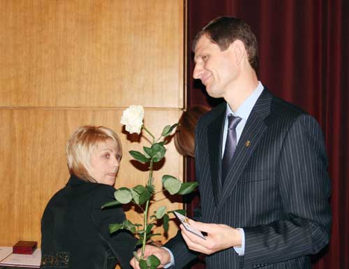 Олександр Сич вручає посвідчення однопартійцю "свободівцю" Ярославу Ткачівському