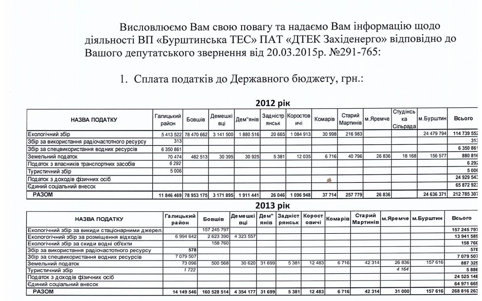 У 2014 році бюджет міста Бурштин отримав від Бурштинської ТЕС лише 157 тисяч грн. податку за землю.
