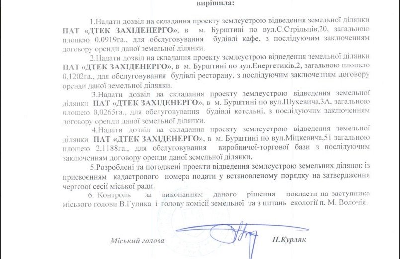 Також «ВОЛЯ» підозрює у корупційних схемах комунальне підприємство «Житловик», яке купляє теплоенергію в Бурштинської ТЕС та продає мешканцям Бурштина за завищеною ціною.