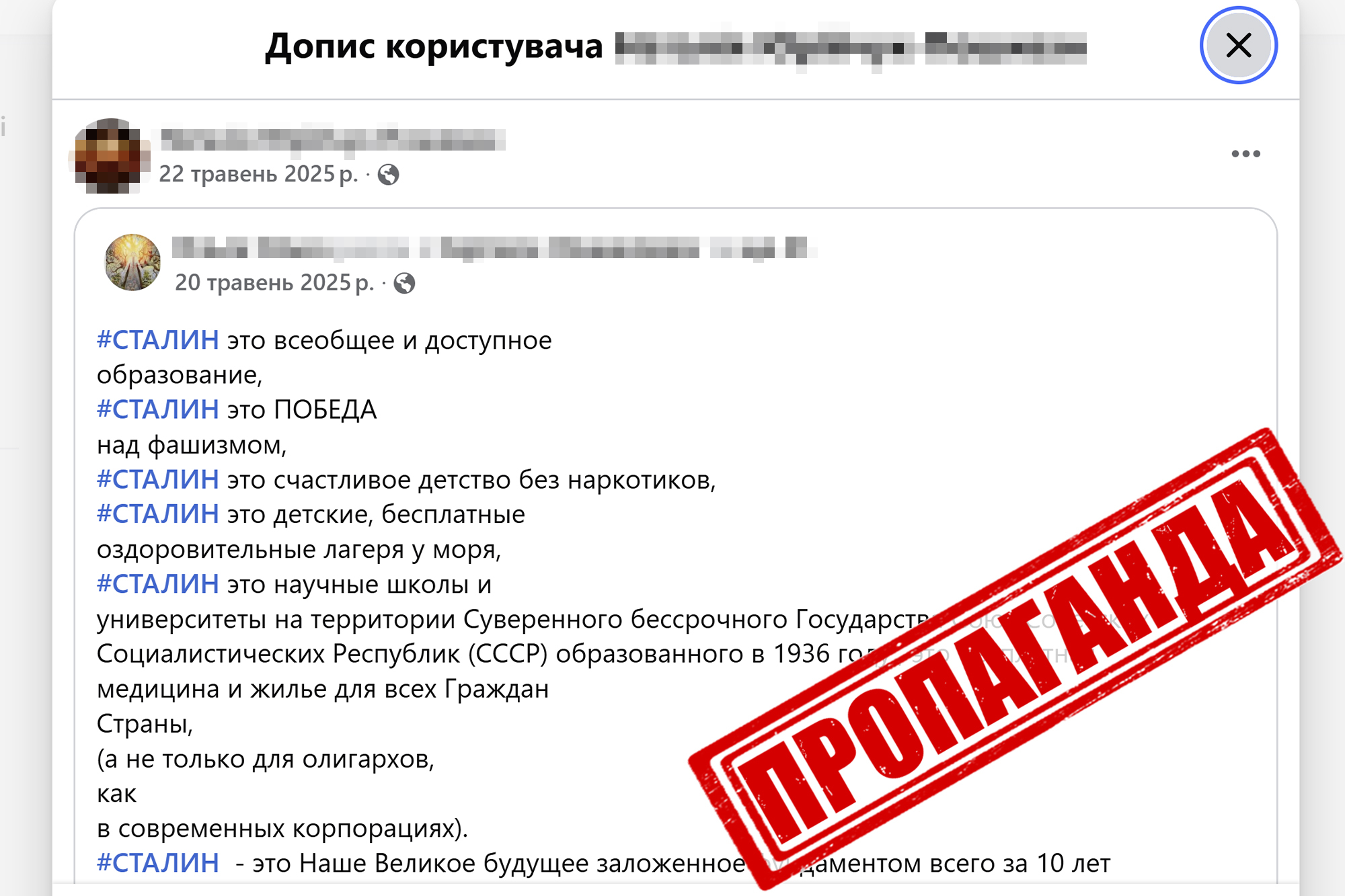 За матеріалами справи, упродовж 2025 року 47-річна уродженка Косівського району систематично розміщувала на своїй сторінці дописи, які заперечують злочинний характер комуністичного режиму, виправдовують його злочини, звеличують вождя тоталітарного радянського режиму Йосипа Сталіна, а також містять символіку срср.