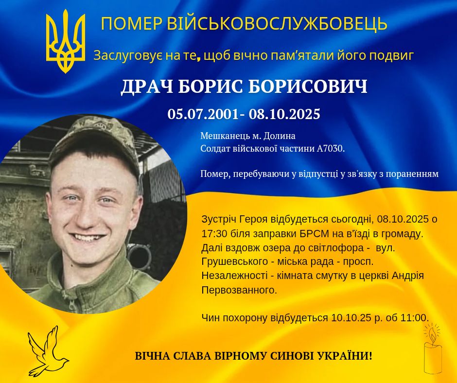 Помер військовослужбовець з Івано-Франківщини Борис Драч.