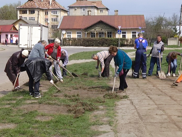 Переселенці Коломийщини збирались на толоку. Жертви російської окупації зі Сходу та Криму вирішили впорядкувати сквер на розі вулиць Івана Франка і Михайла Коцюбинського.