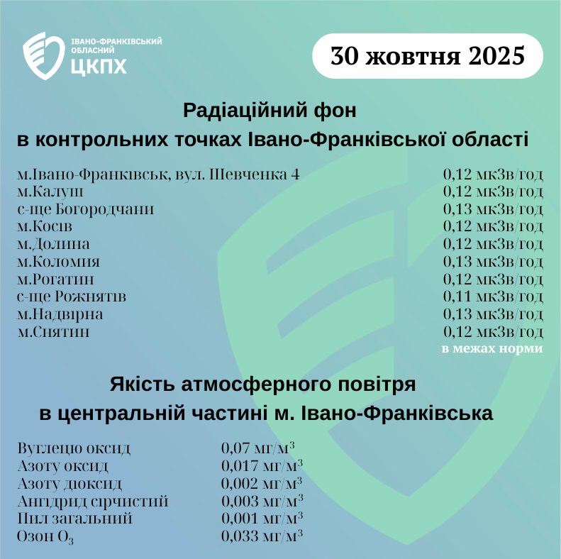 "Інформацію про показники радіаційного фону та стану повітря можете відстежувати на офіційному сайті Івано-Франківського обласного центру контролю та профілактики хвороб за посиланням", — йдеться в дописі.