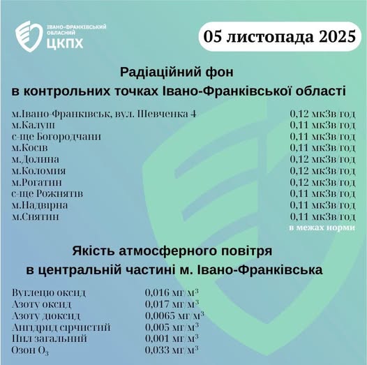 "Інформацію про показники радіаційного фону та стану повітря можете відстежувати на офіційному сайті Івано-Франківського обласного центру контролю та профілактики хвороб за посиланням", — йдеться в дописі.