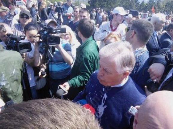 У Києві під час мітингу на честь 1 травня лідера КПУ Петра Симоненка облили кефіром.