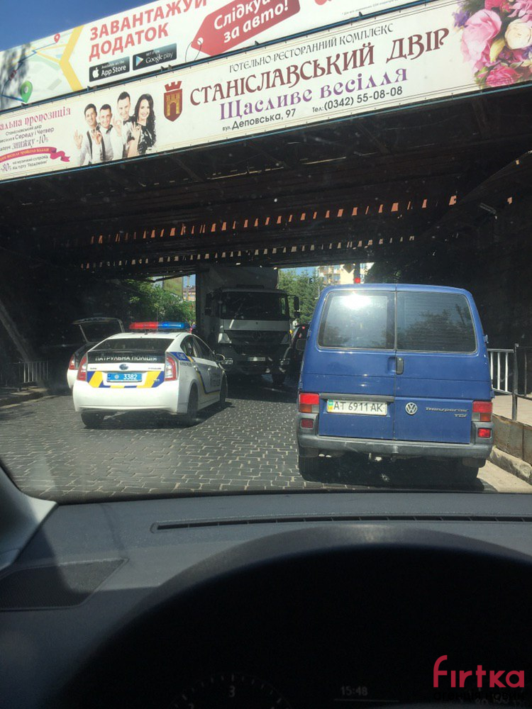 Як інформує кореспондент Фіртки, під залізничним мостом вантажівка не розрахувала свої габарити і застрягла.