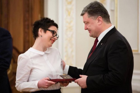 Президент Петро Порошенко нагородив Ірину Земляну Орденом княгині Ольги III ступеню.