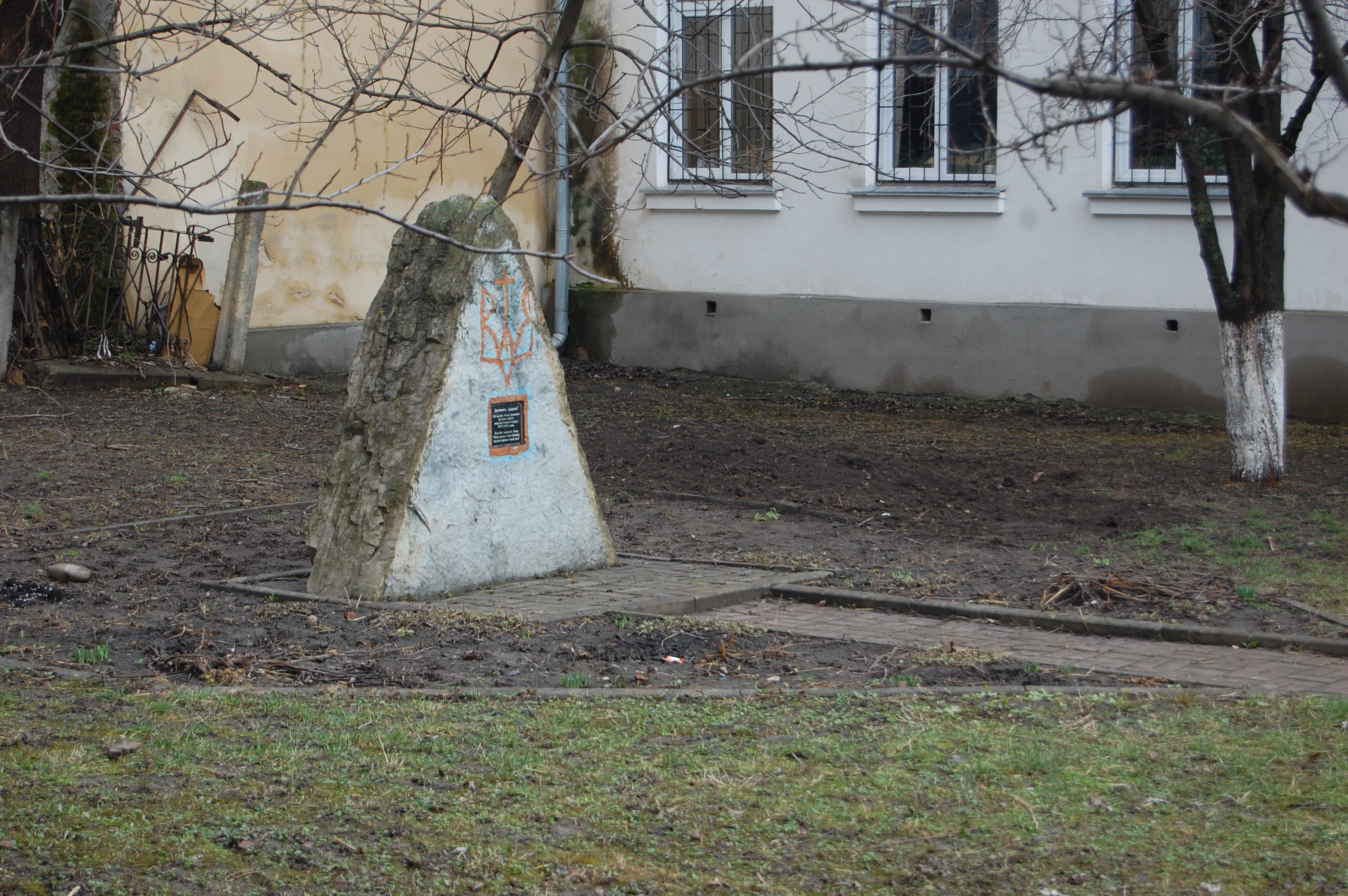 Пам’ятне місце знаходиться у внутрішньому дворі школи, між вулицями Драгоманова та Грушевського, пише Галка.