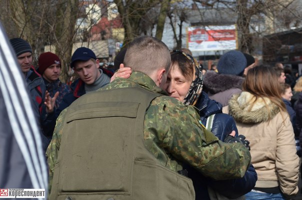 95 бійців батальйону "Івано-Франківськ" сьогодні, 15 березня, відправились із обласного центру Прикарпаття до Маріуполя, аби там виконувати поставлені завдання та захищати цілісність України.