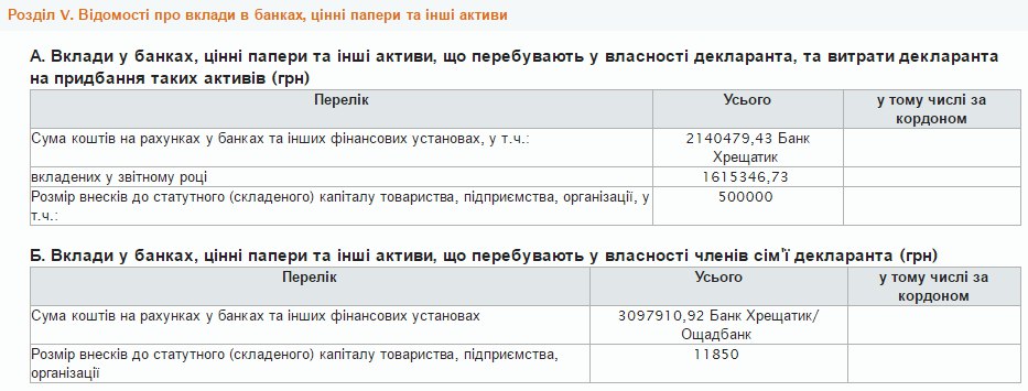 Дружина нардепа тримає в банку 3 мільйони 097 тисяч 910 гривень і має внесок до статутного капіталу підприємства у розмірі 11 тисяч 850 гривень.