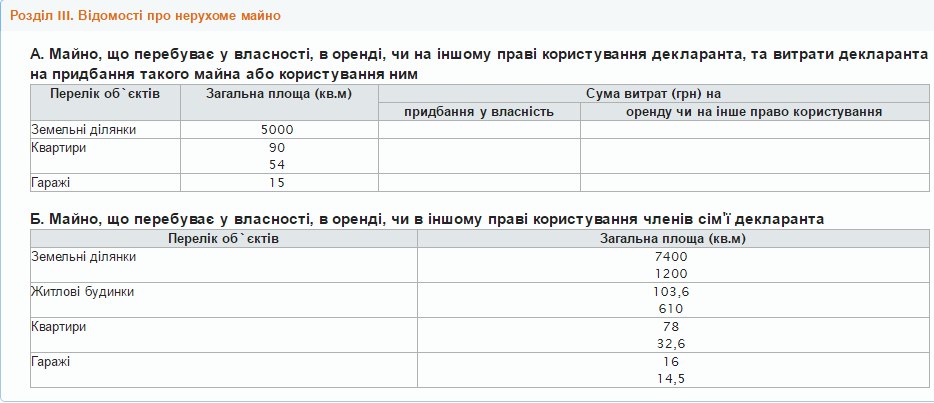 У нардепа є земельна ділянка, дві квартири та гараж.