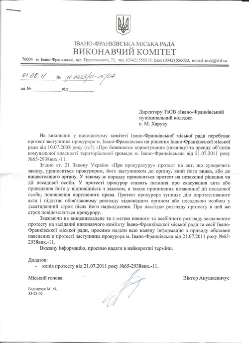 Пркурорський протест, який сесія Івано-Франківської міської ради після звіту спеціальної комісії відхилила