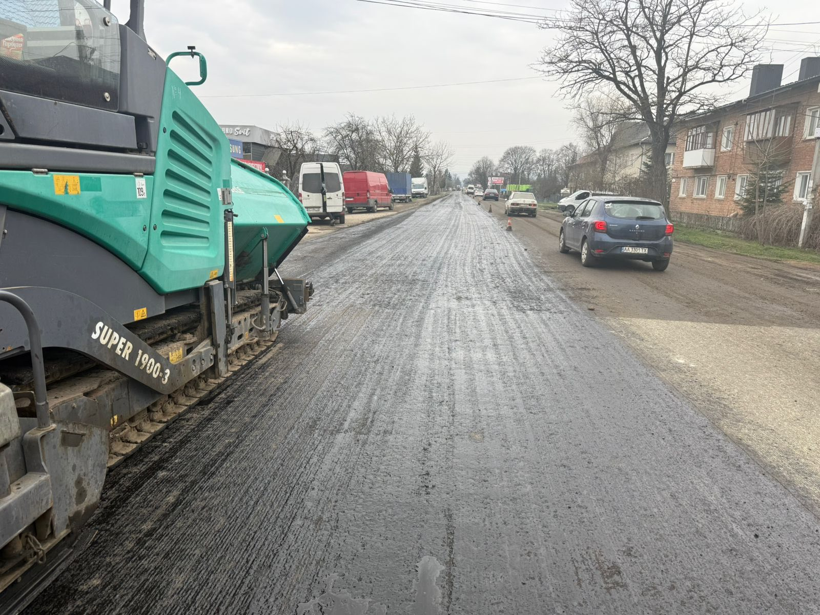 - влаштування асфальтобетону на дорозі Н-09 Мукачево – Львів (ділянки – місто Надвірна та на під'їзді до Івано-Франківська – Калуське шосе, де триває ліквідація аварійної ямковості великими локальними картами);