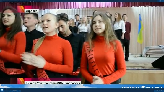 На відео, яке розмістив на Youtube Івано-Франківський фізико-технічний ліцей-інтернат, підлітки на сцені навчального закладу співають патріотичну пісню про те, що Україна – понад усе.