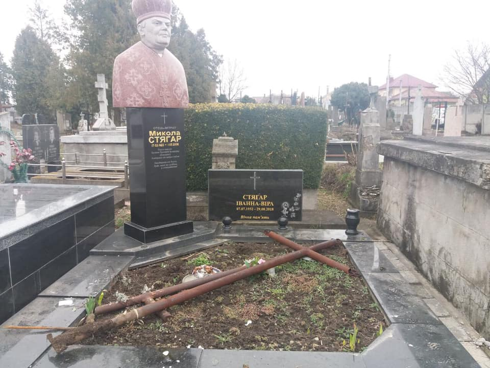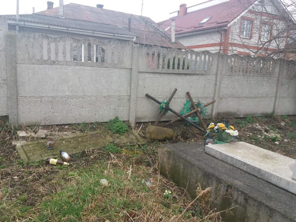 "Зрада дня! Вандалізм, лібералізм і сатанізм в дії на кладовищі мікрорайону Княгинин! От кому заважають мертві?! Аналогічна ситуація в приміському селі Вовчинець", - йдеться у дописі.