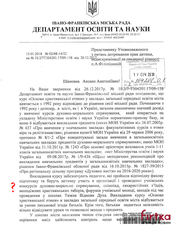 Так головний освітянин міста Ігор Смаль своїм листом Представнику Уповноваженого з питань дотримання прав дитини стверджує, що ніякого втручання в освітній процес державних ЗОШ не було.